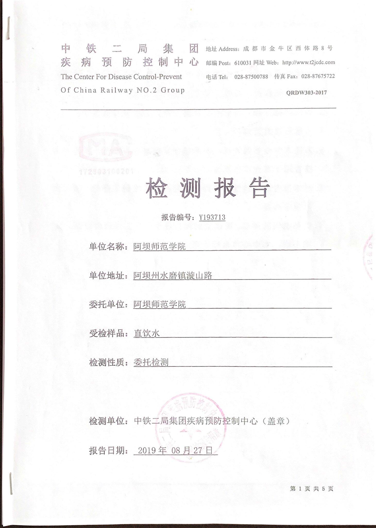 关于学生寝室直饮水检测报告的公告
