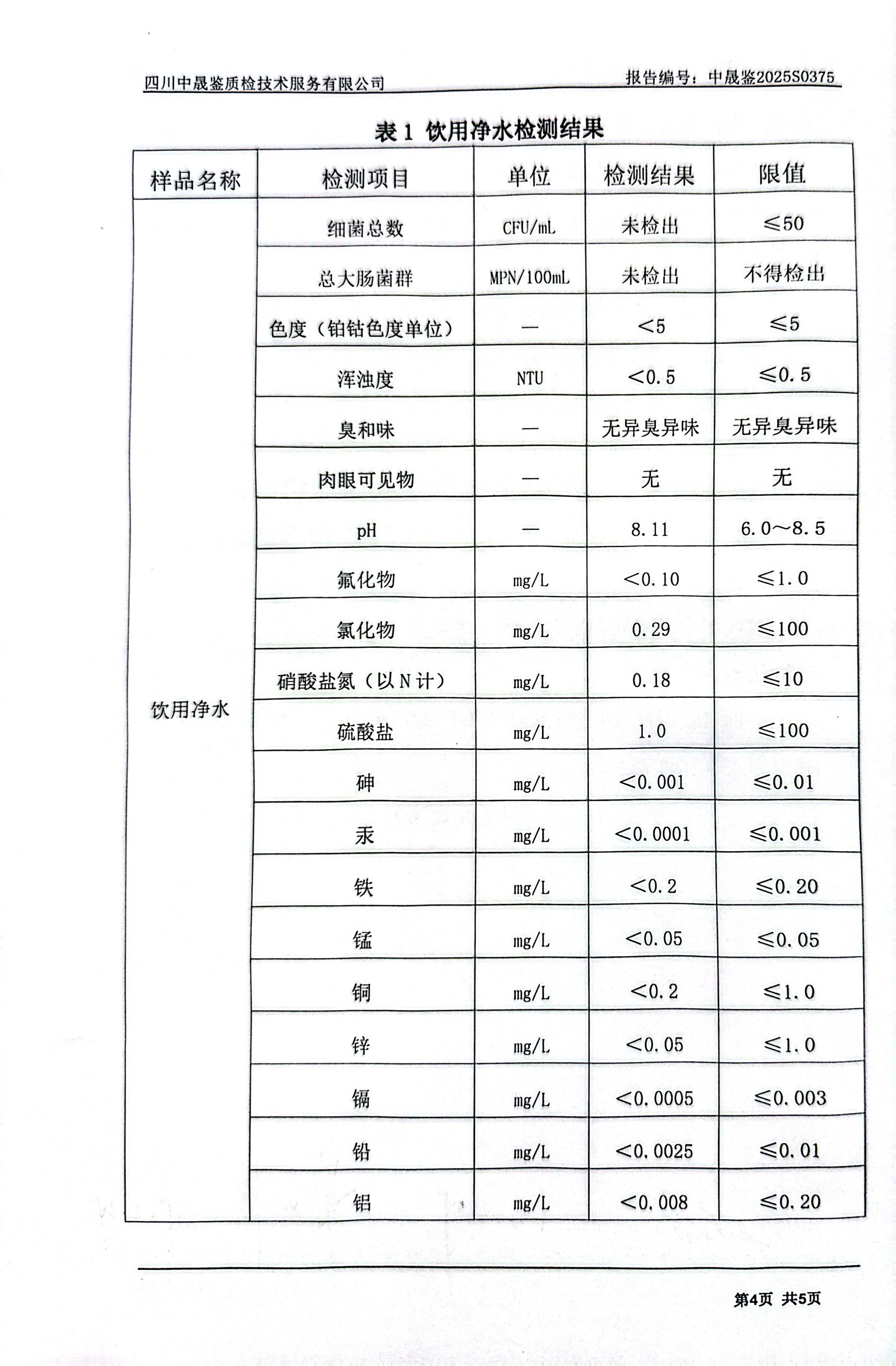 2025春季阿坝师范学院生活饮用水水质检测报告