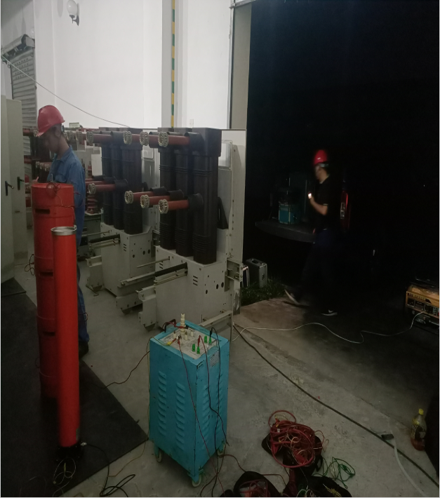 后勤基建处在突发事故后第一时间向学校主管领导汇报,学校领导班子高度重视,立即启动工作预案,迅速对抢修复电工作进行全面部署。在岷电公司的鼎力相助下,6月2日上午11点我校排查出本次停电的原因,同时岷电公司提供两台应急发电车,一台保证食堂基本运转,一台保障高位水池供水,我校也及时安排启用备用发电机,首先保证行政楼、教学楼正常用电,以确保师生教学工作顺利开展。6月2日晚上12:00,工作人员结束耐压测试;6月3日上午10:00,后勤工作人员经与岷电公司技术人员商讨,决定采用开闭锁柜替代现有设备实现临时通电;6月3日中午12:00,决定方案调整为使用真空断路器,实现临时通电;6月4日凌晨2:30,实现岷电公司对学校教学和生活正常供电。