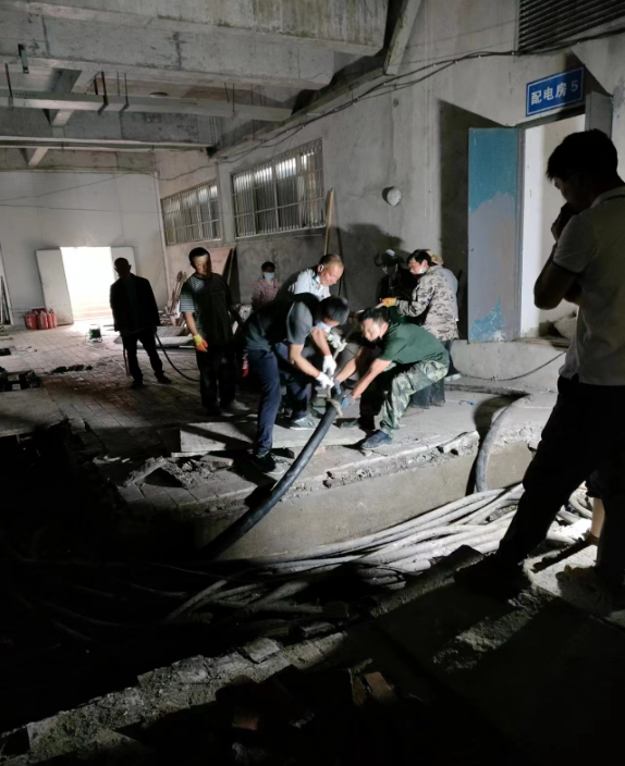 此次停电事故突发,时间紧、任务重,后勤人不舍昼夜,连续48小时没有休息,团结一心、群策群力、争分夺秒坚守在抢修一线。有的电力师傅家里孩子尚小,有的师傅子女即将参加高考,但接到我校电力抢修请求后,都发扬了“顾大家舍小家”的敬业精神,第一时间赶到学校投入到抢修任务当中。正是这些可爱的“后勤人”,守护了我校一万多师生的万家灯火,点燃了水磨校区的光亮。