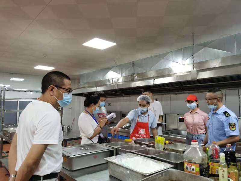 此次检查。主要从食堂经营规范、硬件环境、从业人员要求、食品原料管理、预防交叉感染及食品添加剂使用、环境卫生清洁消毒等方面开展。检查组一行着重检查了食堂操作流程、操作间设置、食堂食材处理流程的分区设置、肉类粗、精加工分区设置,以及消毒区域,并肯定了留样管理的双人双锁制度的落实。同时,对我校食品安全工作存在的问题提出了宝贵的整改建议和意见。