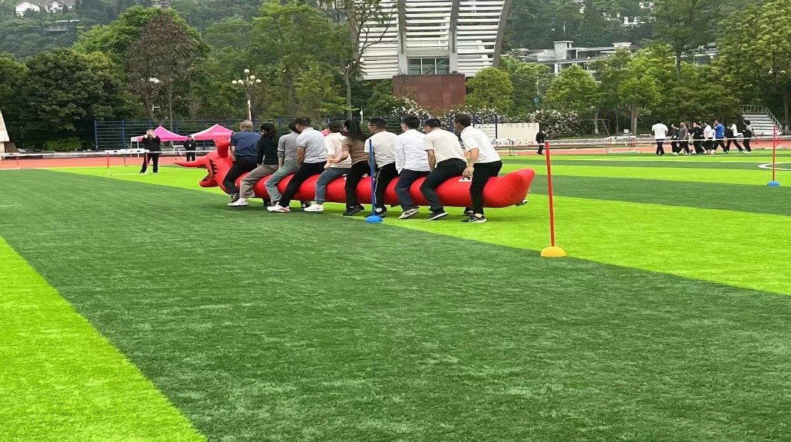 此次精彩而激烈的教职工趣味赛,设立了过草地、勇闯长征路、巧运军粮、爬雪山、四渡赤水等5个项目。竞赛场面风趣活泼、井然有序,第七支部成员们参与热情高涨,以饱满的活力投入到每一场竞赛中,赢得了场外观众的阵阵呐喊声、欢呼声,观众们目不转睛地注视着赛场,为选手们的超凡表现而惊叹不已,整个比赛现场精彩非凡。