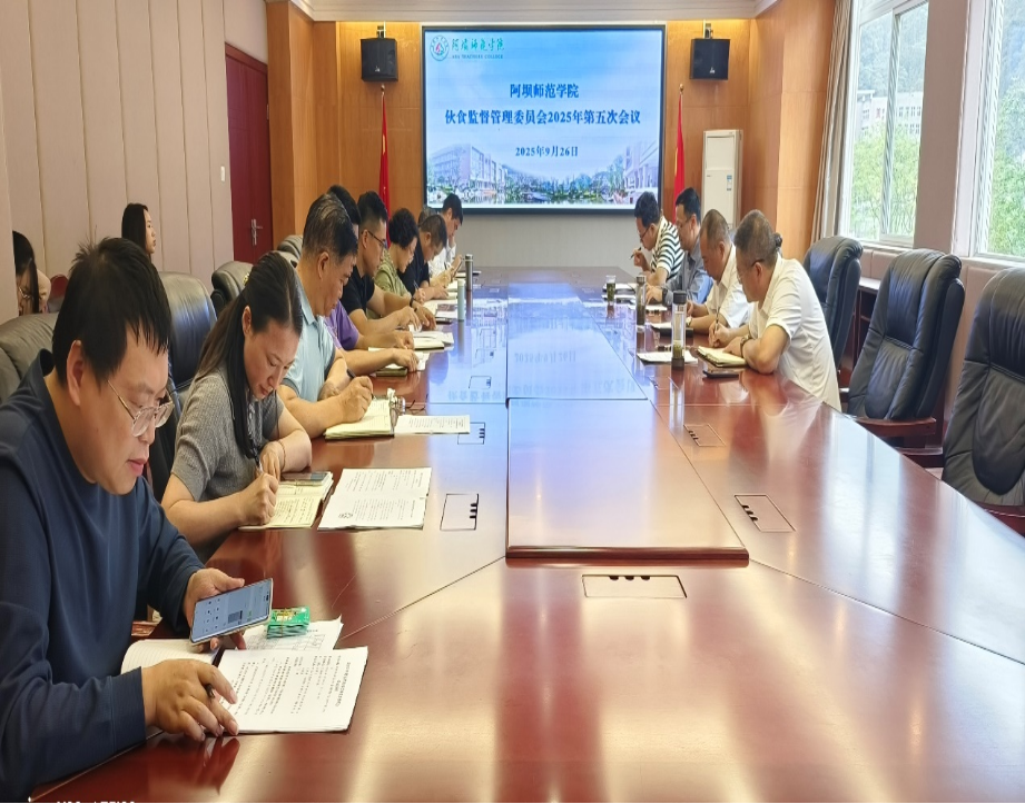 2025年9月26日,阿坝师范学院伙食监督管理委员会2025年第五次会议在行政楼406会议室召开。学校党委副书记宋弘,党委常委、副校长马昌威,党委常委、副校长刘伟出席会议,各职能部门负责人参加会议。会议由后勤基建处副处长孙延飞主持。