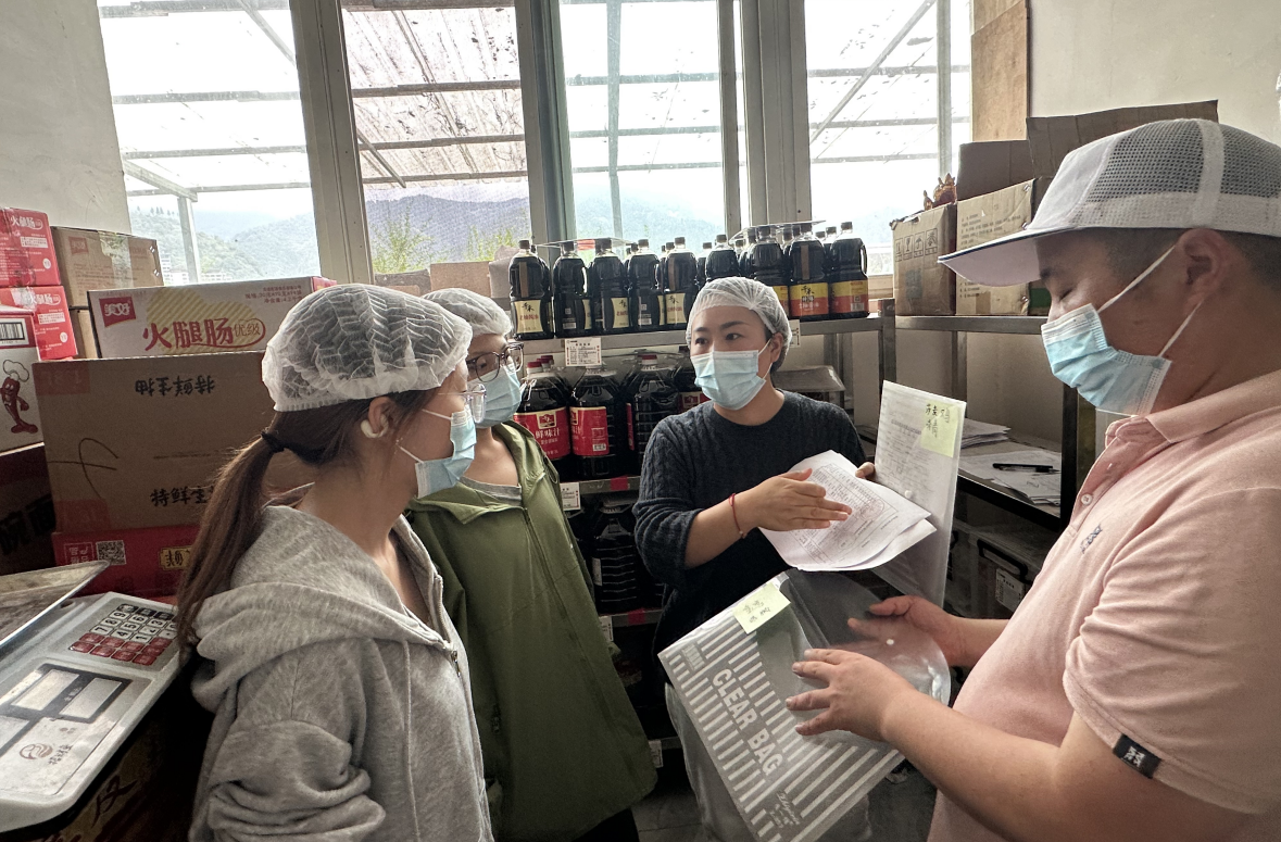 来自各学院的10名学生代表在卫生健康与食品安全科温老师的引导下,实地参观加工区、留样间、库房等重点区域,观看食材加工制作全流程,检查食堂各项资料,观察后厨环境卫生清洁、食品留样等食品安全把控与规范化管理情况,沉浸式感知学生食堂的规范运行。参观过程中,温老师为同学们进行了全程细致的讲解。她详细介绍了学校在食品原料采购、入库验收、菜品48小时留样以及日常流程规范等方面所执行的严格标准和制度,充分体现了我校食堂规范化、精细化的管理水平。