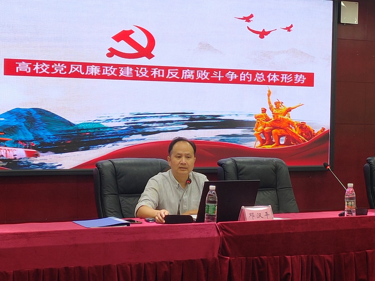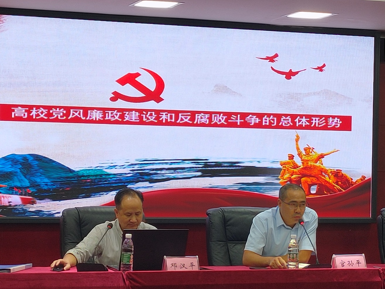 学习会上,邓汉平从高校党风廉政建设和反腐败斗争的总体形势着手,着重讲解了当下高校七大腐败问题中的基建工程问题及后勤管理问题。邓汉平提出基建工程问题有四点:一是立项阶段用心不纯;二是招标阶段有猫腻;三是施工阶段耍花样;四是竣工验收搞变通。在后勤管理上,邓汉平指出,要严格把控物资采购环节,监管食堂承包问题,切实按照制度和程序办事。