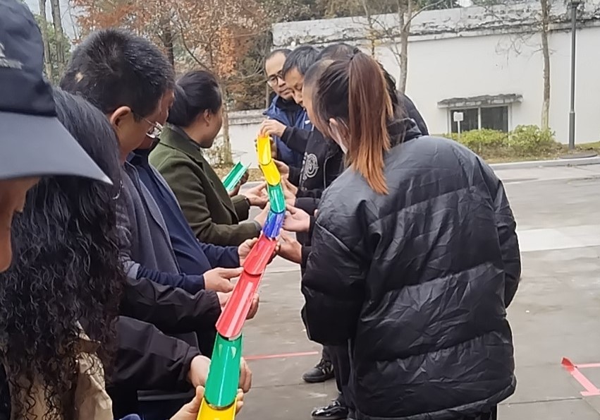 参赛队员们挑战150秒团队接力趣味比赛,共五项活动。一是不倒森林。增强团队凝聚协作能力,锻炼个人反应能力。二是诺亚方舟。培养团队合作精神,发扬团队成员的互助精神。三是集体跳绳。增强教职工体质,丰富校园文化,提高教职工运动能力,提高运动兴趣。四是能量传输。考验团队工作心态和勇于接受挑战的拓展训练活动,充分锻炼团队的领导力,沟通协调能力。五是激情击掌。团队成员精神集中,气氛热烈,深入加强团队融合,激发团队成员热情,释放自身能量,团队配合默契,增强团队成员自信。