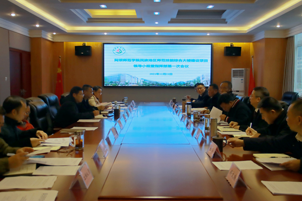 【本网讯】为有序推进项目建设工作,12月22日上午,阿坝师范学院民族地区师范技能综合大楼建设项目领导小组暨指挥部第一次会议在行政楼406会议室召开。建设项目领导小组、建设项目指挥部及相关部门负责人和工作人员参加会议,学校党委副书记、校长、项目建设工作领导小组组长向武主持会议。
