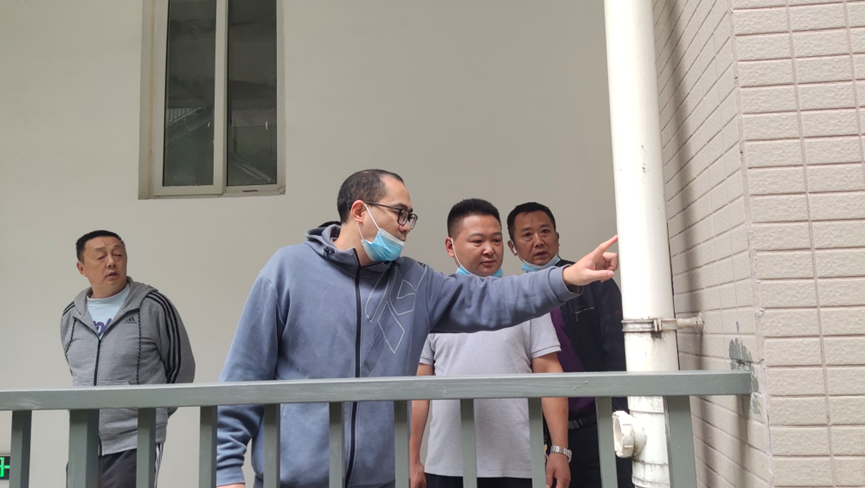 官孙平一行从行政楼出发,依次检查了树人楼、水厂、教师公寓等地。官孙平副处长首先就道路清洁工作做安排,使用高压水枪对人行步道进行大面积的冲刷清洗,保证路面干净整洁。针对树人楼的围栏、门、窗以及玻璃橱窗等易积灰的地方,官孙平副处长表示要勤扫多检,采取一定措施有效处理教学楼的卫生问题;针对楼外侧的排水管、校园道路旁的栏杆,官孙平副处长做出工作安排,维修公司应尽快完成栏杆刷漆、水管美化工作。在教师公寓,官孙平副处长强调了垃圾投放要规范,以及垃圾收运要及时的要求。官孙平副处长强调,一方面,物业保洁人员要保证教学环境的干净整洁,另一方面,每个人要发挥主人翁意识,积极自查,力争进一步美化校园环境,譬如路边的地砖、楼宇设施是否完好,维修公司应全面排查,并快速整改,又如绿化方面,绿化人员应积极查看,向处领导提出整改意见并实施。他指出,校园维修改造工作与环境卫生都需要进一步完善,各单位要立即行动起来,认真落实相关工作。