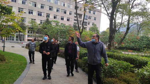 为迎接本科教学合格评估,进一步美化校园,营造舒适的校园环境,2022年10月18日,后勤基建处副处长官孙平带队检查校园维修改造工作与环境卫生情况,水厂、电站及绿化、保洁工作人员,维修公司负责人随同。
